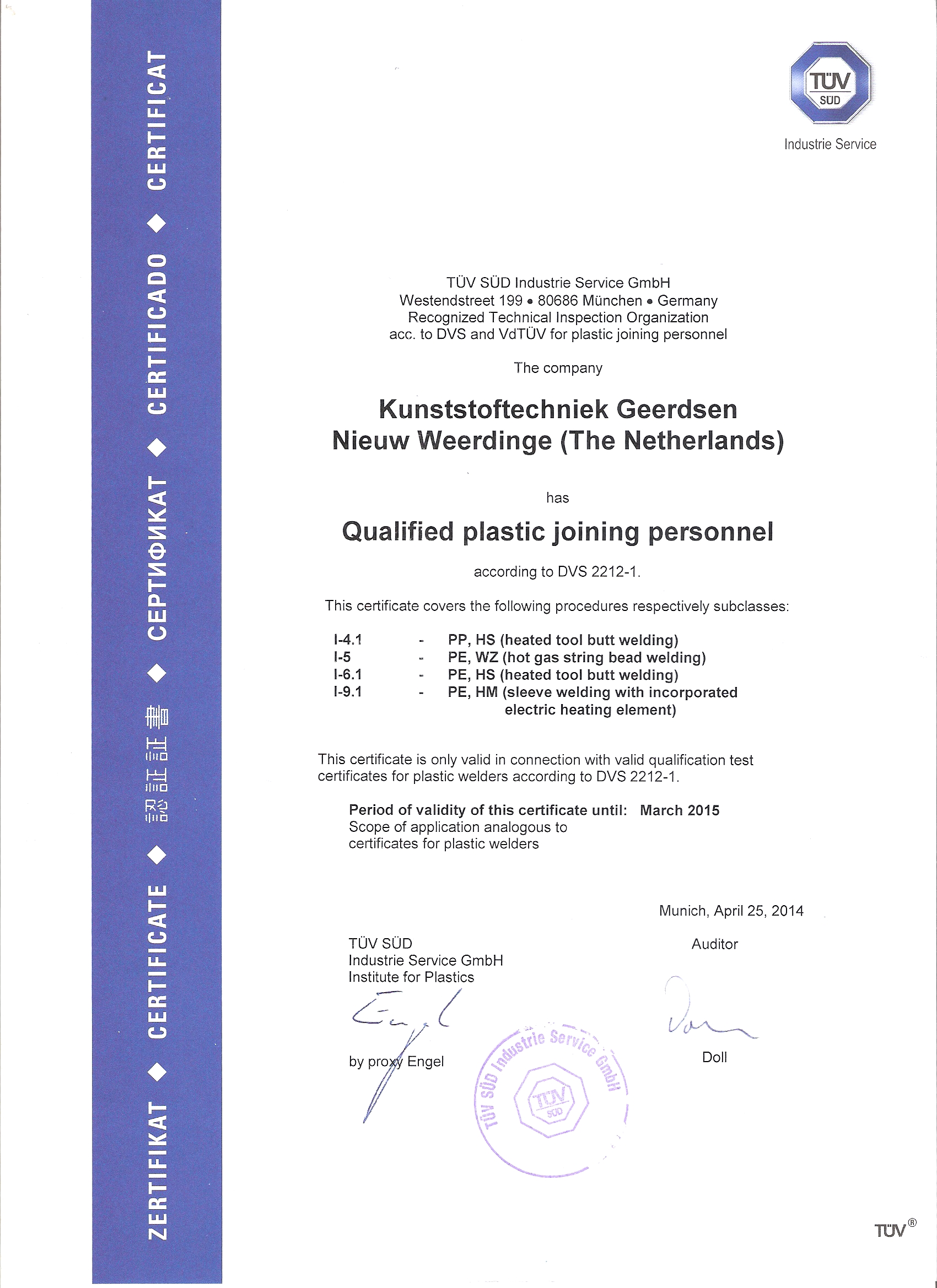 Kunststoftechniek Geerdsen is TÜV gecertificeerd: